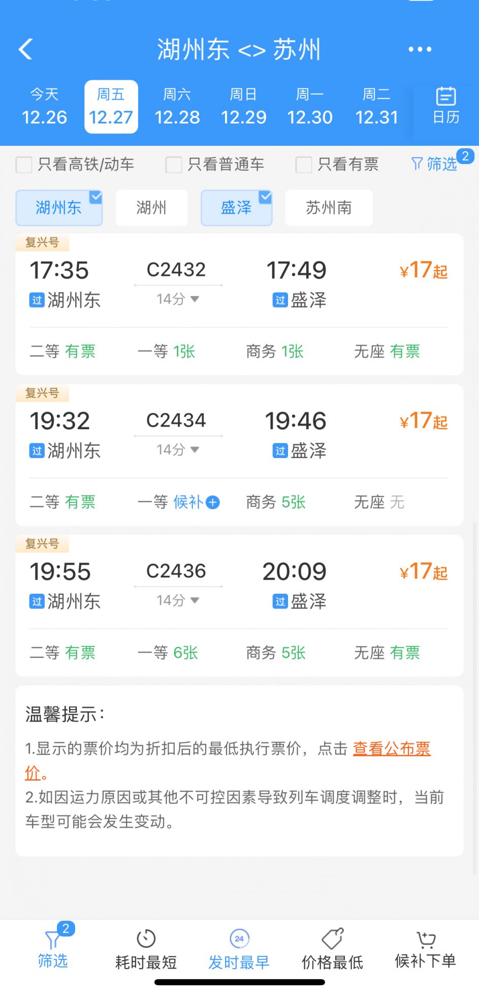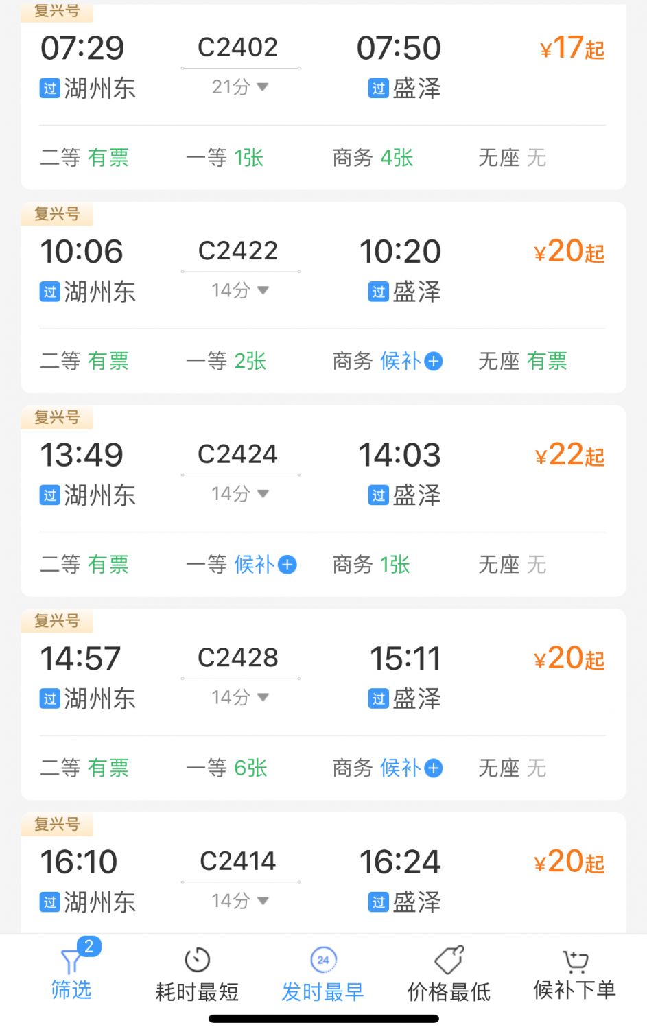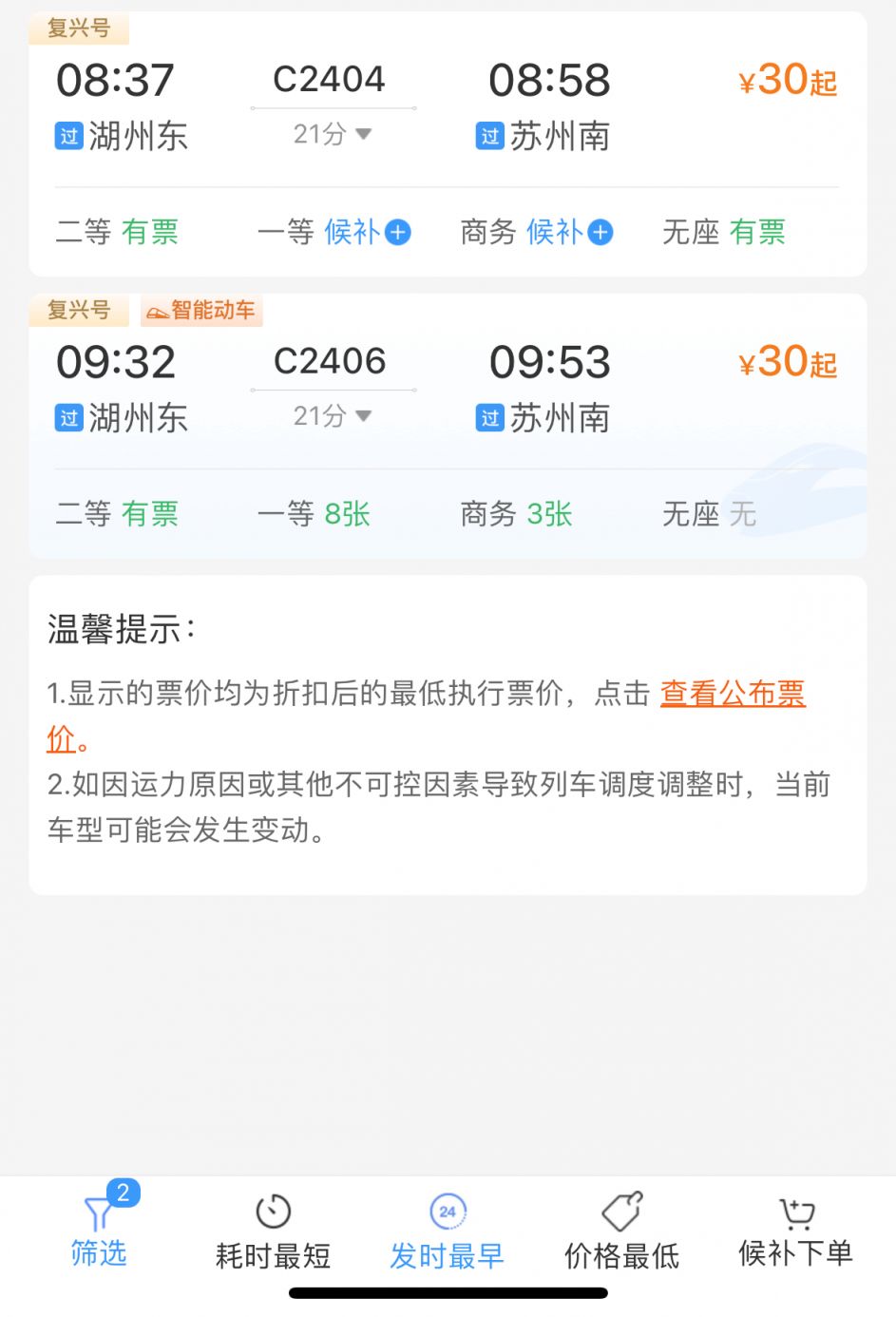 | 车次 | 发车时间 | 到达时间 | 历时 | 商务座 | 一等座 | 二等座 | 动卧 | | ---- | -------- | -------- | ---- | ------ | ------ | ------ | ---- | | Gxxx | 07:00 | 08:05 | 1小时5分 | 288元 | 176元 | 112元 | - | | Gxxx | 08:30 | 09:35 | 1小时5分 | 288元 | 176元 | 112元 | - | | Gxxx | 10:00 | 11:05 | 1小时5分 | 288元 | 176元 | 112元 | - | | ... | ... | ... | ... | ... | ... | ... | ... | | Gxxx | 19:30 | 20:35 | 1小时5分 | 288元 | 176元 |举报 -