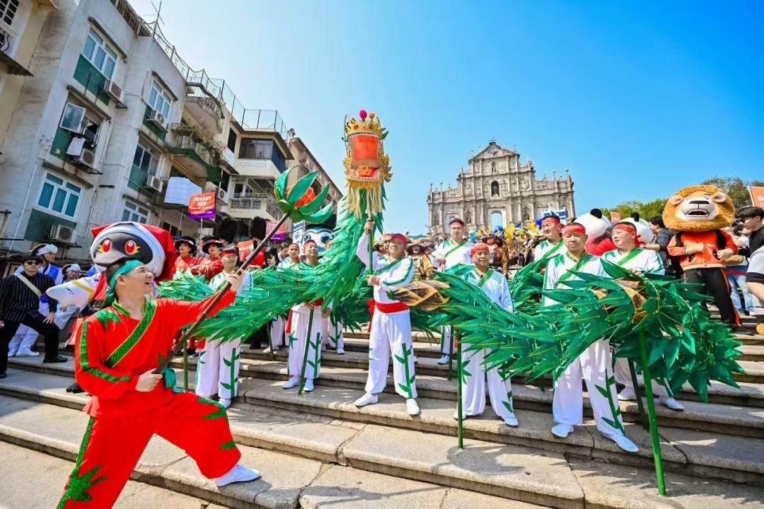 活动年以“东西汇流·亚洲融和”为主题,策划“扬帆起航”“乘风破浪”“流星追月”“满载而归”四个寓意航海历程的单元进行推广,串联一系列文化、体育和旅游盛事,让世界感受东亚文化的多样魅力和中华文明的深厚底蕴。作为澳门重要的品牌节庆,国际幻彩大巡游自2011年举办至今,成为庆祝澳门回归祖国的年度节庆活动之一。今年大巡游有来自葡萄牙、法国、西班牙、意大利、德国、摩洛哥、印度、波斯尼亚和黑塞哥维那、波利尼西亚、阿根廷、埃及、中国香港等共83个艺团参加。同时,还特别同为2025“东亚文化之都”的其他三个城市中国湖州市、韩国安城市、日本镰仓市的艺团共同参与。安吉竹叶龙作为湖州市省级非物质文化遗产闪耀受邀,在这一国际舞台绽放独特魅力。